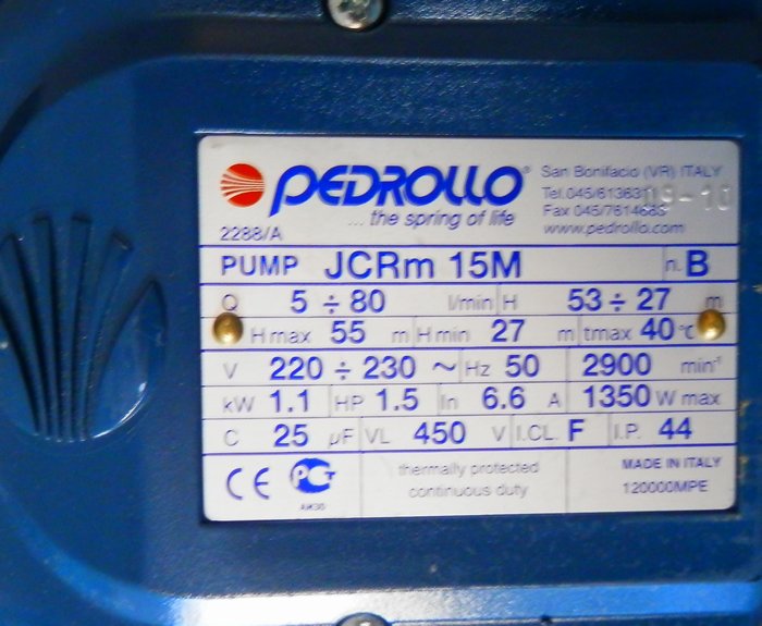 Èíôîðìàöèÿ ïðî "JCRm 15M (46JSRM21A1, Pedrollo)":