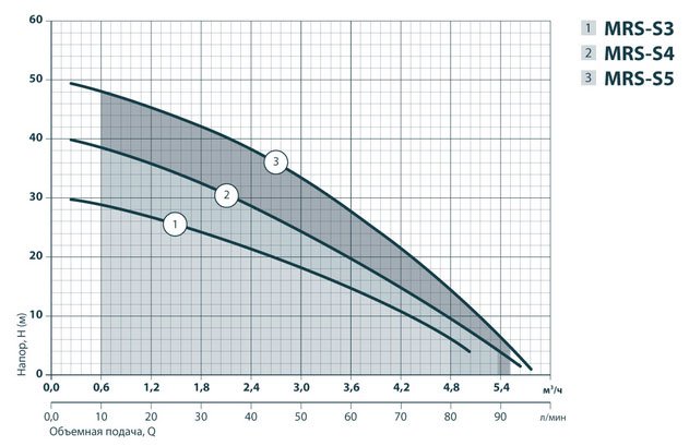 Îñíîâíûå õàðàêòåðèñòèêè öåíòðîáåæíîãî ñàìîâñàñûâàþùåãî ìíîãîñòóïåí÷àòîãî íàñîñà Sprut MRS S 3:
