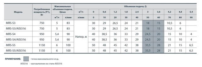 Îñíîâíûå õàðàêòåðèñòèêè öåíòðîáåæíîãî ñàìîâñàñûâàþùåãî ìíîãîñòóïåí÷àòîãî íàñîñà Sprut MRS S 5: