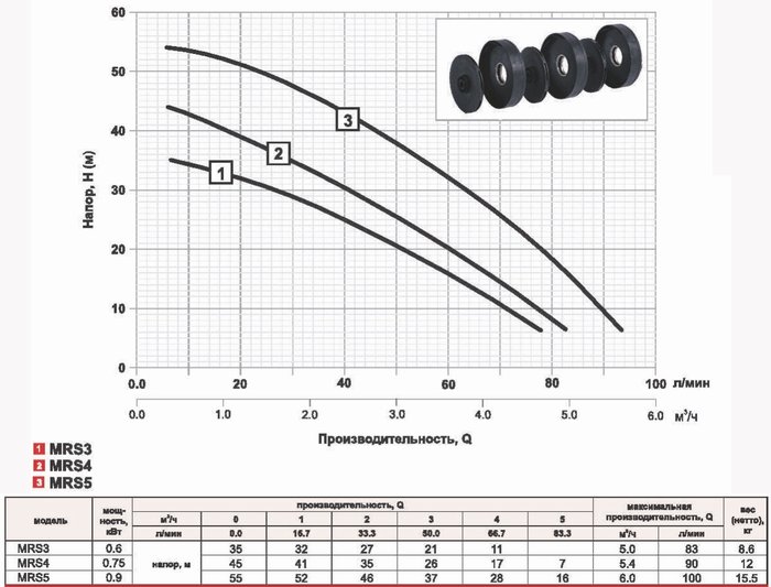 Îñíîâíûå õàðàêòåðèñòèêè öåíòðîáåæíîãî ìíîãîñòóïåí÷àòîãî íàñîñà Sprut MRS 4: