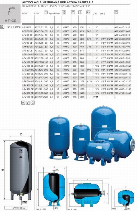 Ãèäðîàêêóìóëÿòîð äëÿ ñèñòåì õîëîäíîãî è ãàðÿ÷åãî âîäîñíàáæåíèÿ Elbi AFV-60 CE